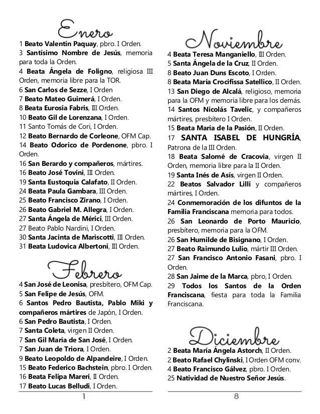 Calendario Con Nombres De Santos 2025 . Día de la madre ; Santos y beatos de órdenes religiosas, países, proceso de canonización.